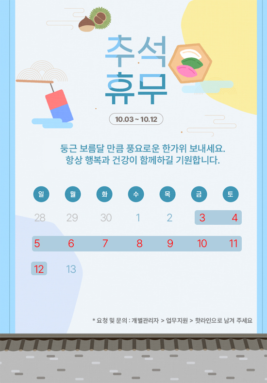 매직홈NE 지원팀 고객센터 추석 연휴 휴무안내 입니다.